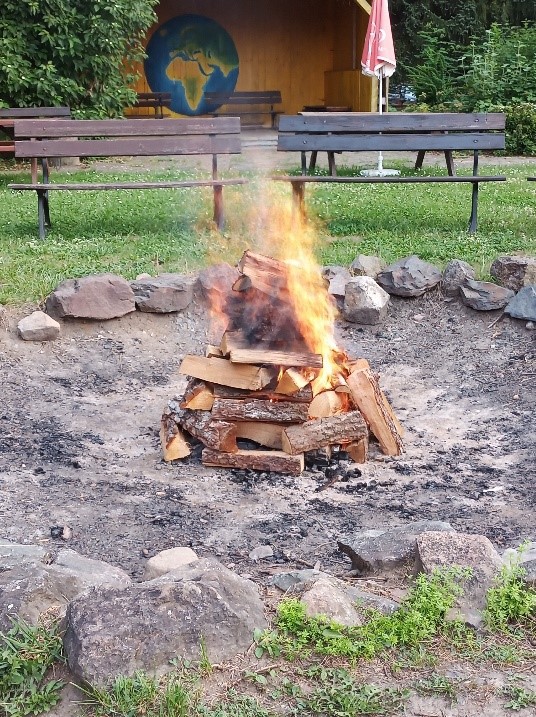 Zum Abschluss des Tages grillten wir Stockbrot am Lagerfeuer. Wir saßen gemütlich zusammen, haben erzählt und das Knistern des Feuers und die warme Atmosphäre genossen.