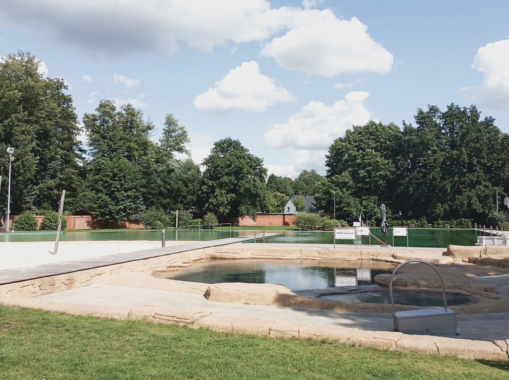 Nachmittags schien dann endlich die Sonne und wir konnten im Natursportbad Bad Düben nach Herzenslust planschen, schwimmen und rutschen. Das war ein großer Spaß.